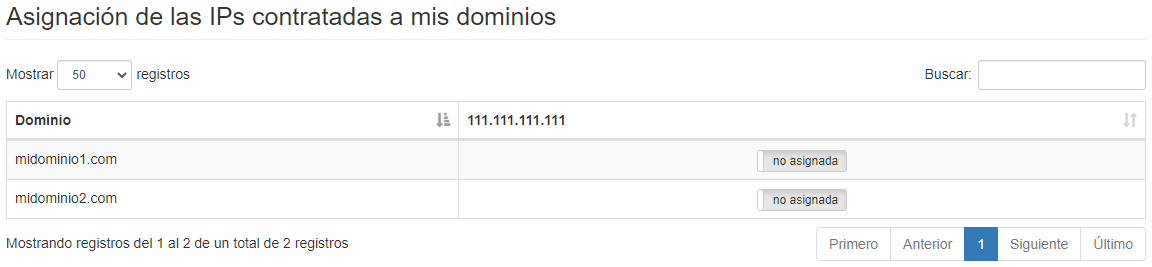 Todos los dominios que veas en el panel que no tienen ninguna IP asignada de las tuyas, tendrán asignadas las IP compartidas que te proporciona la plataforma.