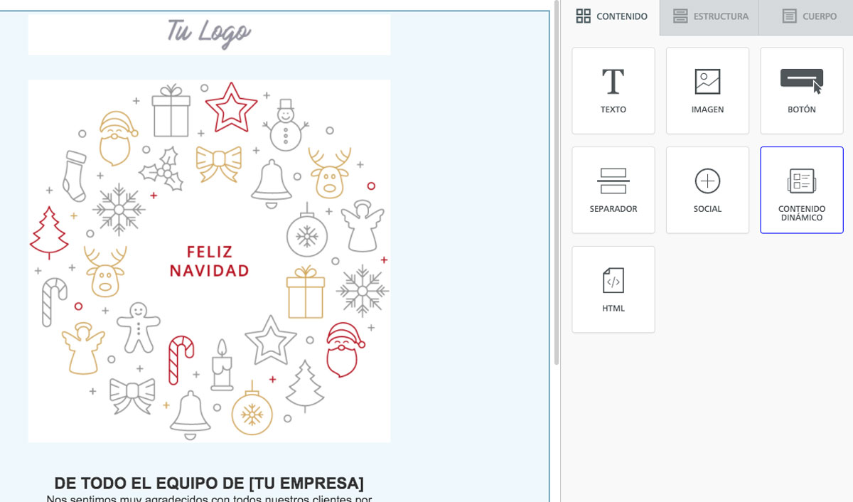 • Añade contenido a cada bloque creado anteriormente a través de las diferentes opciones que nos proporciona la pestaña 'Contenido'.